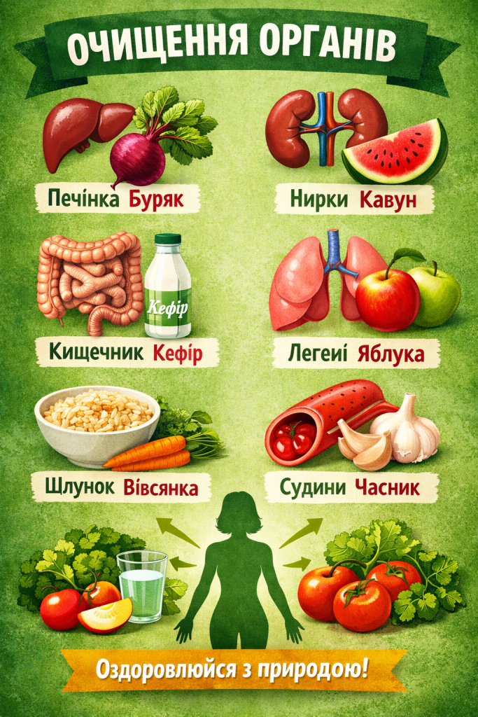 Наш організм має природну здатність до очищення, але деякі продукти допомагають йому працювати ще краще. Правильна їжа підтримує роботу печінки, нирок, кишечника та інших органів.